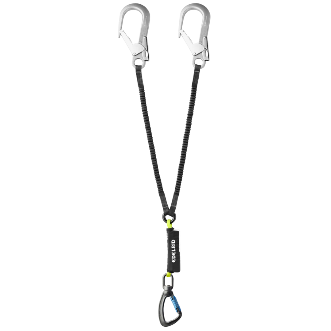 Dieses Y-Verbindungsmittel überzeugt durch elastische Arme, einen integrierten Falldämpfer und leichte, große Rohrhakenkarabiner aus Aluminium.