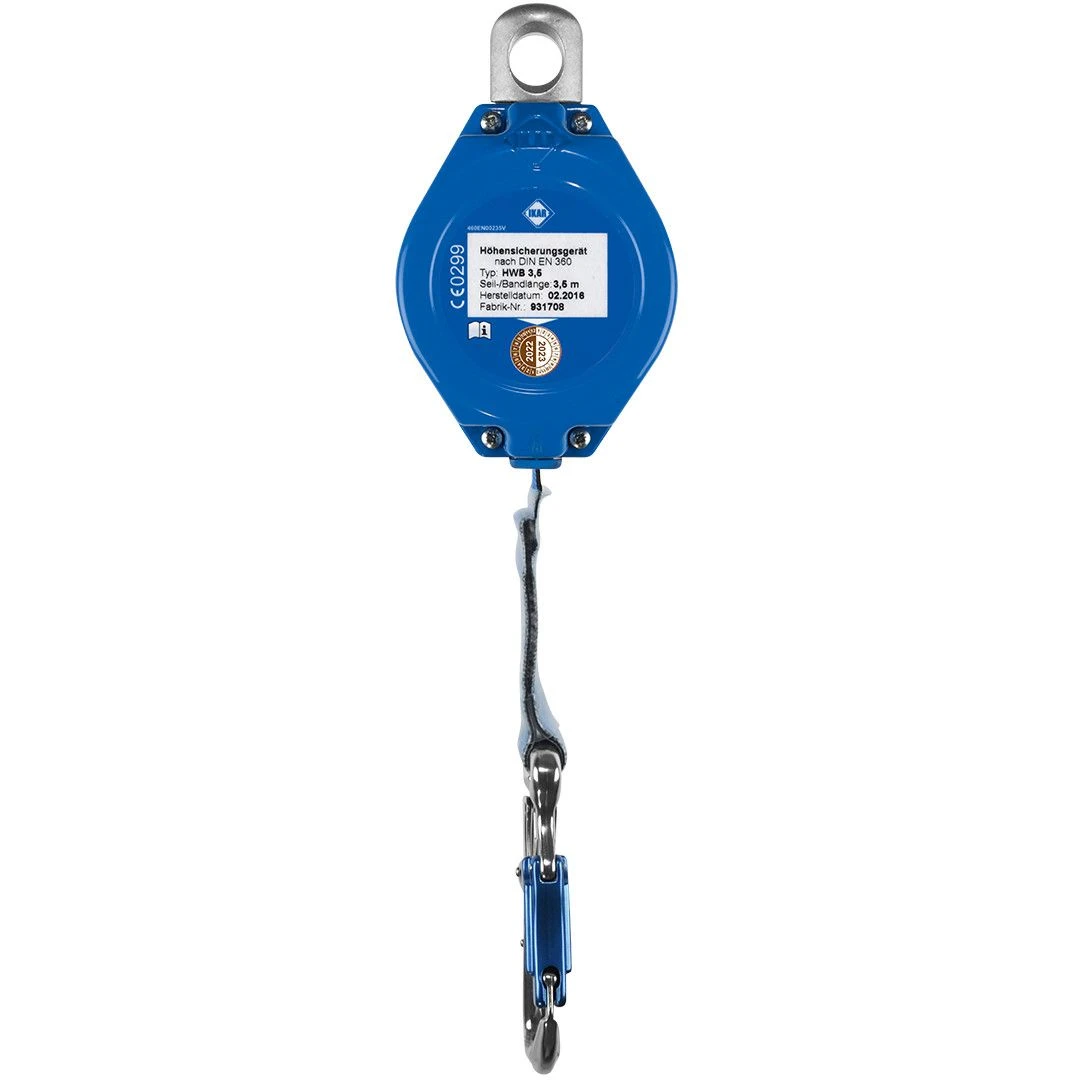 Das Höhensicherungsgerät HWB ist leicht und robust. Das Gehäuse besteht aus Aluminium und das Bandmaterial ist aus Dyneema® gefertigt. Es kann somit hohen Belastungen ausgesetzt werden und ist dennoch langlebig und gewichtsoptimiert. Das Bandmaterial ist für die Belastung über die Kante geprüft.