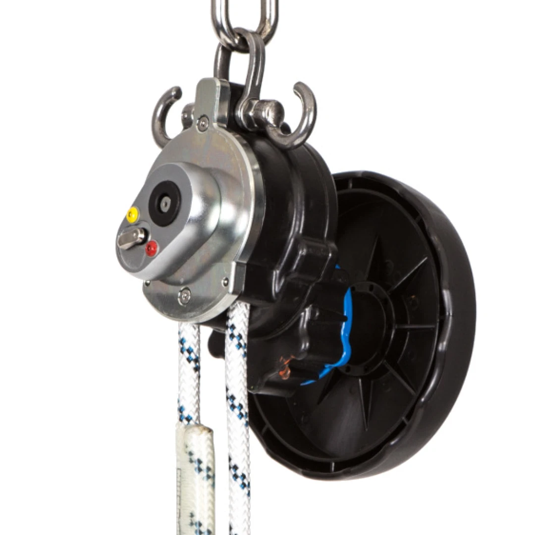 Das Rettungshubgerät hat ein Gewicht von 2,19 kg und kann mit einem Seil von bis zu 160 m Länge ausgestattet werden.