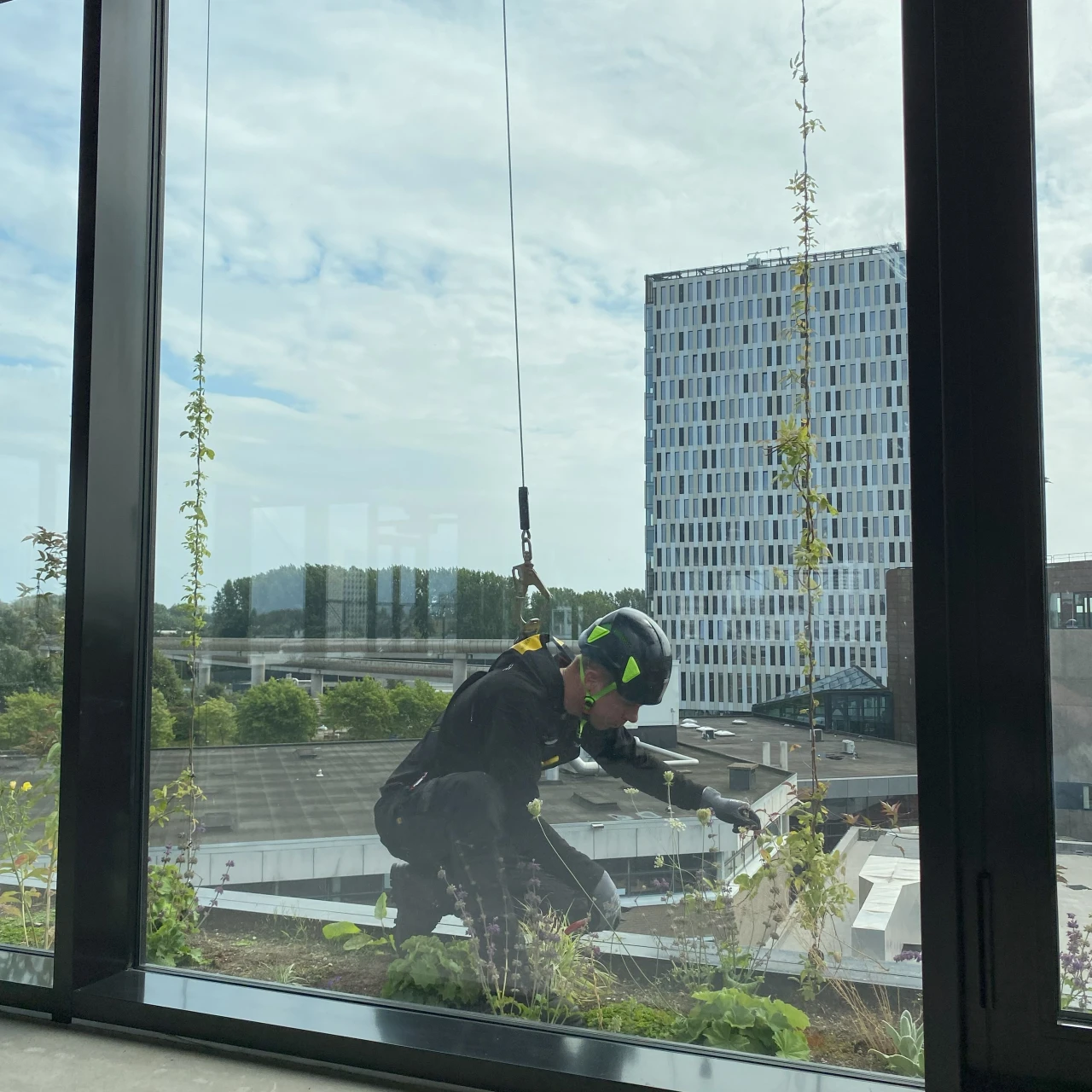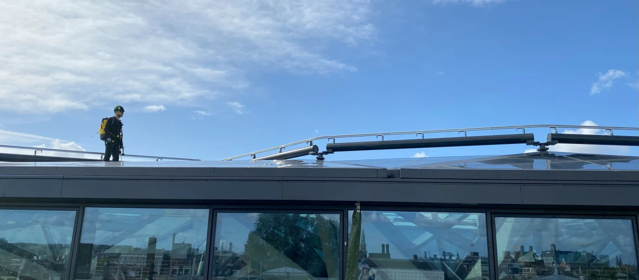 Dit project omvat de renovatie van het voormalige Binnengasthuisziekenhuis en een deel nieuwbouw. De glazen atriumkap is door ons voorzien van een SecuRail-railsysteem voor valbeveiliging en rope access. Op het platte dak hebben we kabelsystemen en de Roofwalker Flash geplaatst, en aan de glazen pui van de nieuwbouw hebben we een verrijdbare wasladder geïnstalleerd.